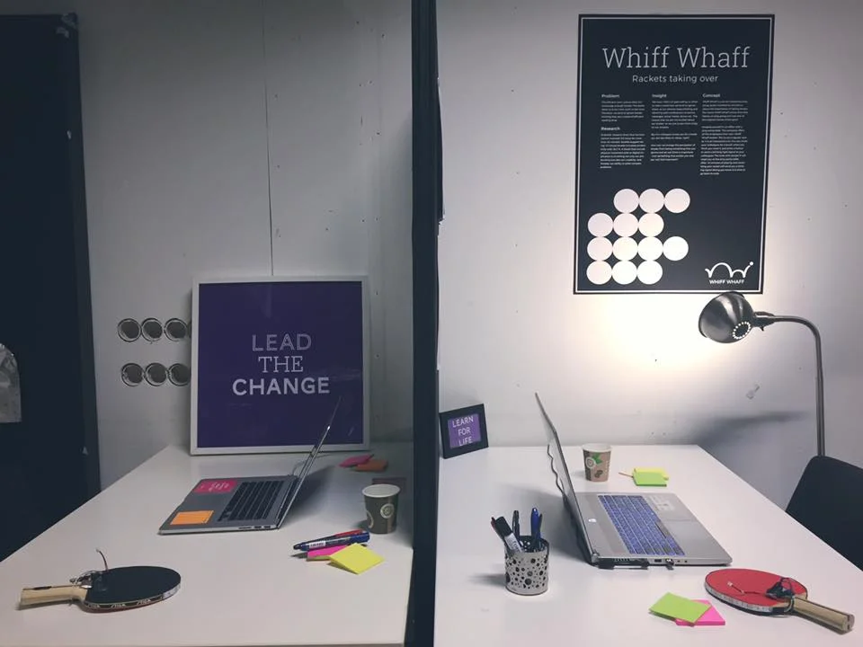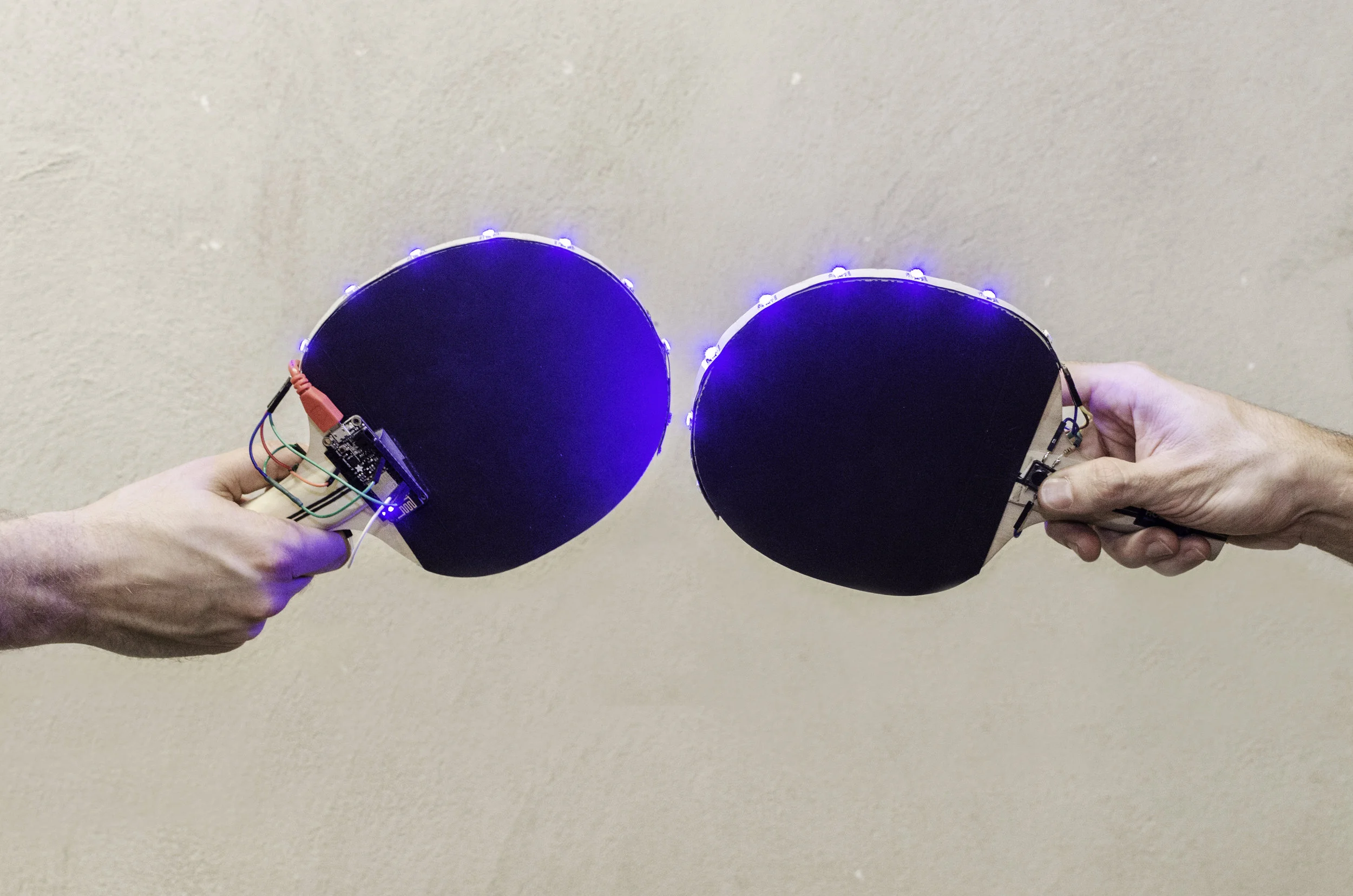 In the beginning of the process we deciding to build something useful using an item that already exists. We ended up talking about how important it is to take breaks when working creatively. Scientific research shows that you should take a 10 minutes break every 45 minutes to increase your creativity. As many creative agencies seem to have a ping-ping table so we decided to build ping-pong rackets connected with Arduino and blinking lights. The purpose is to invite a colleague to take a short break with you. After playing for 10 minutes the racket goes inactive for an hour.